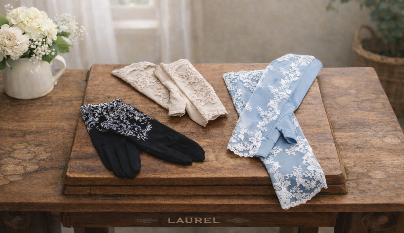 L011 フラワーシアーレース UVアームカバー手袋 ロングサイズ