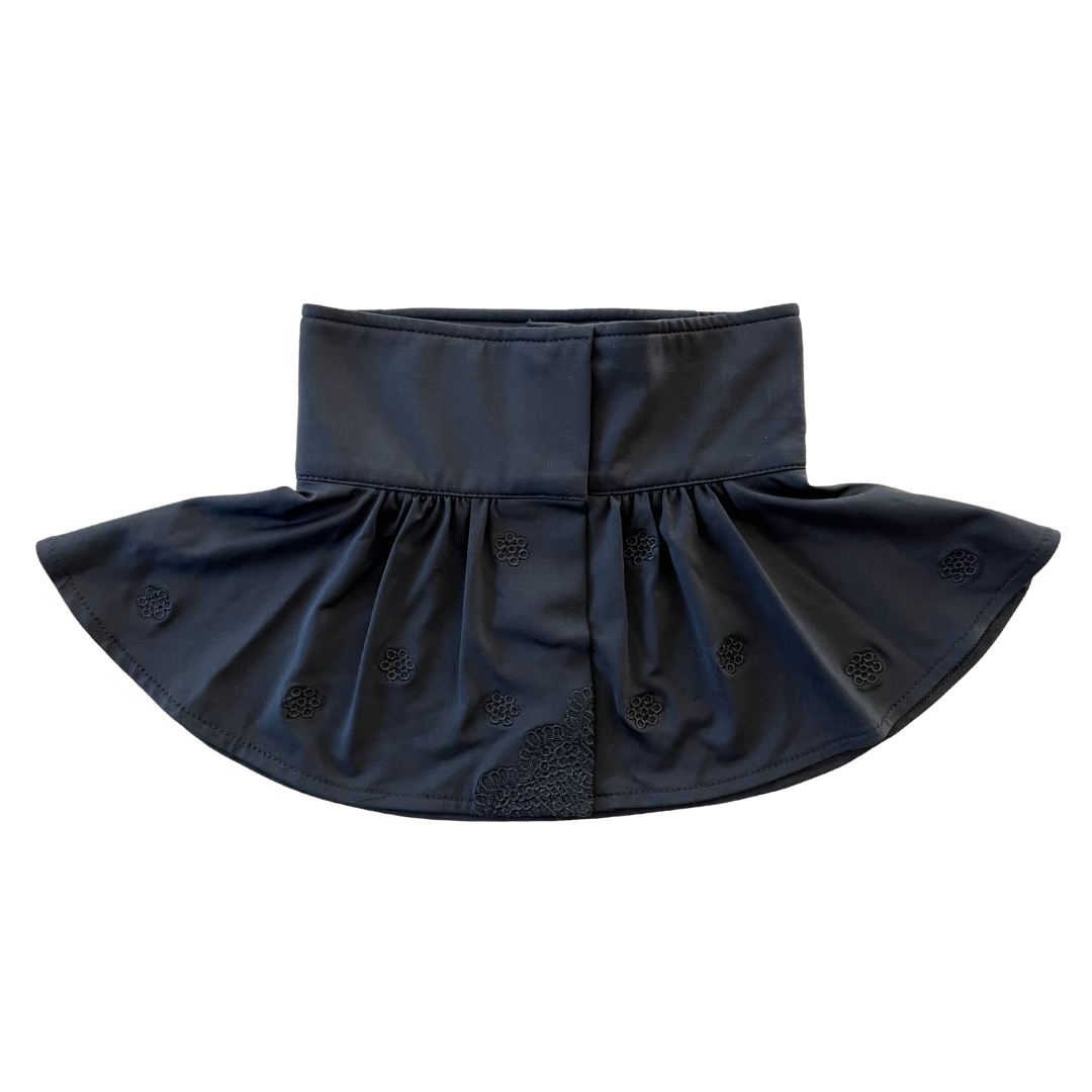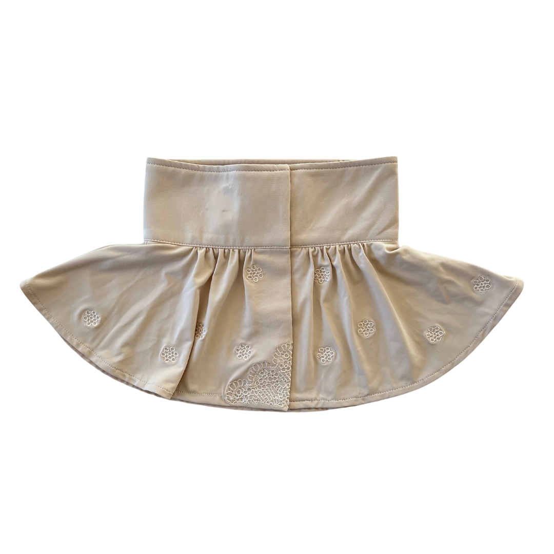 A UV neck cover with a floral embroidery design that protects the neck and shoulders from UV rays and is made of cool-touch material. With a UV cut rate of over 99%, it protects your neck and nape from UV rays even when wearing clothes with wide open collars.