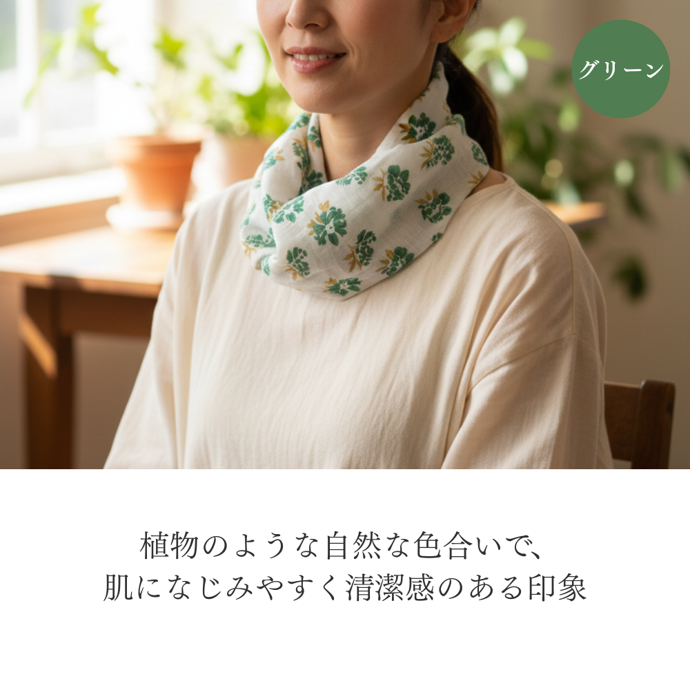 軽やかな着用感で、首元をふんわりと包み込みます。