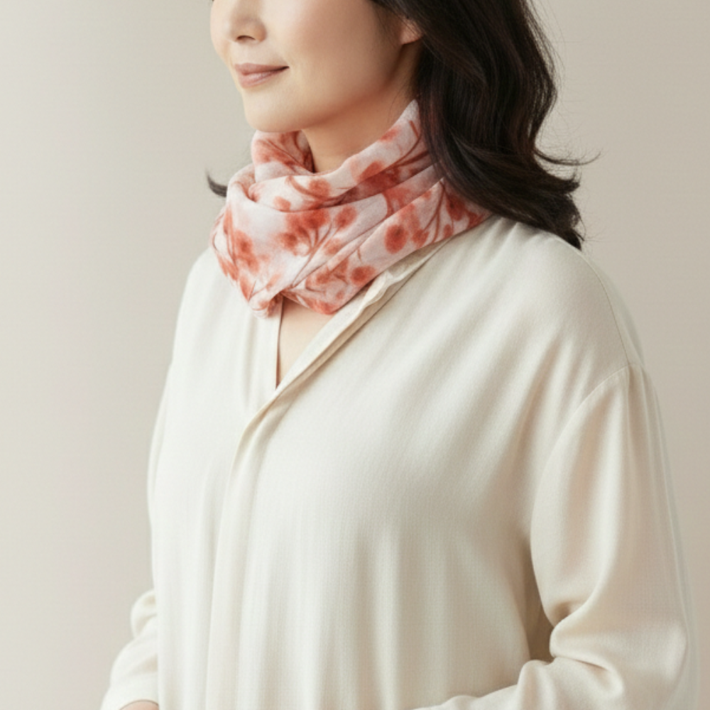 柄の表情をきれいに見せながら、首元にやさしくなじみます。